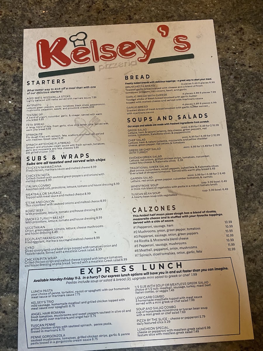 pepperoni, green peppers, onions, tomato slices, salami, feta & black olives